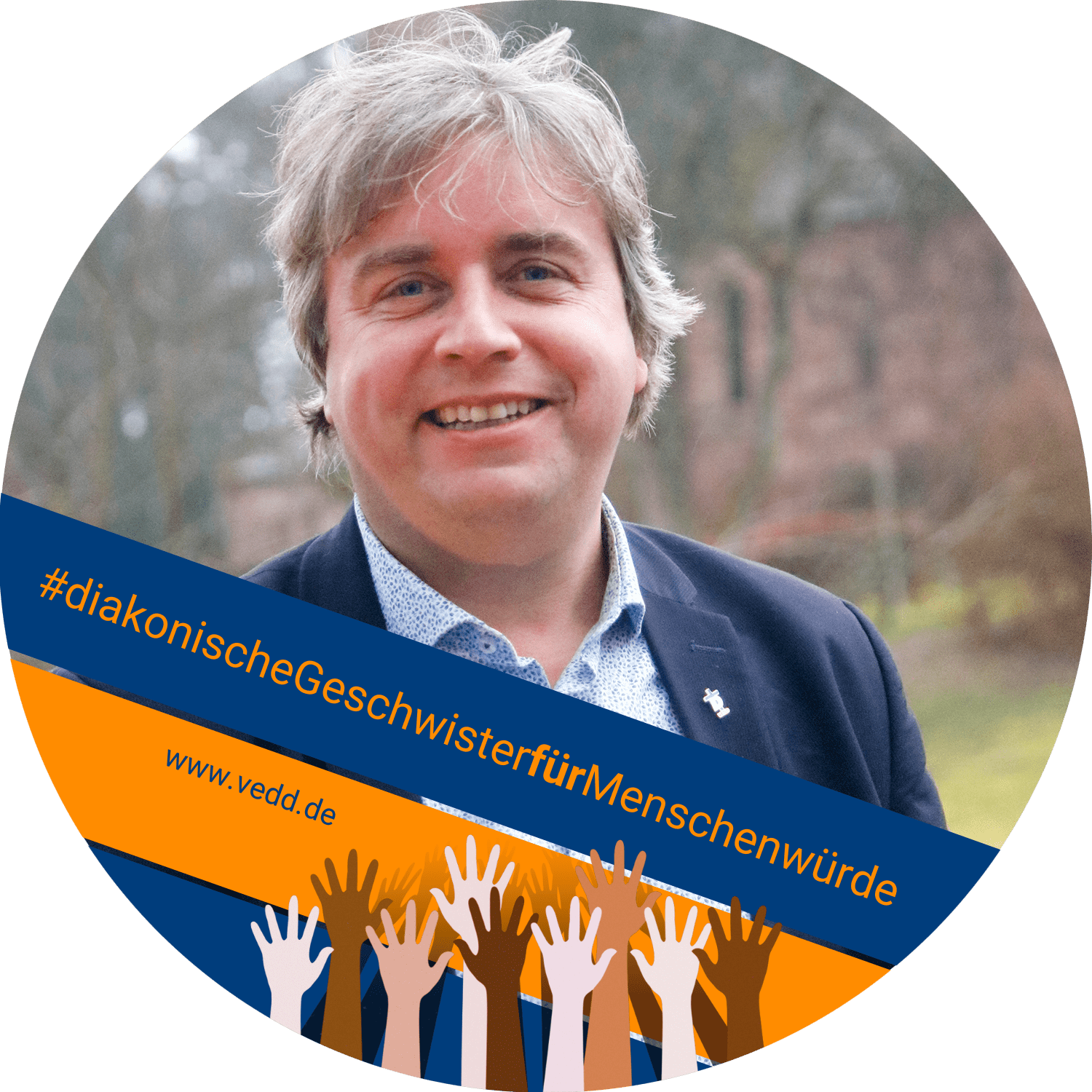 Im Downloadbereich (weiter unten auf dieser Seite) findet ihr verschiedene Banderolen als Vorlagen für Diakon:innen und diakonische Geschwister zum Herunterladen. Mit jedem normalen Fotobearbeitungsprogrammen könnt ihr die Banderolen auf euer Profilbild setzen. Solltet ihr technische Schwierigkeiten damit haben oder kein Fotobearbeitungsprogrammen zur Verfügung haben, könnt ihr euer Bild per E-Mail an schicken. Wir bearbeiten es dann für euch und senden es euch zurück.