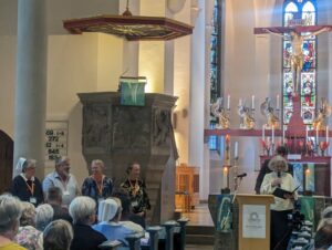 Heute stand ein Vortrag von Cornelia Coenen-Marx, der ehemaligen Leiterin des Referats Sozial- und Gesellschaftspolitik sowie Verbindung Kirche und Diakonie im Kirchenamt der EKD, auf dem Programm. Heute ist sie die Geschäftsführerin der Agentur „Seele und Sorge – Impulse, Workshops, Beratung“. Sie sprach über die Notwendigkeit und die Möglichkeiten, im Dialog zu miteinander zu bleiben. Nach den regionalen Versammlungen ging es dann wahlweise nach Nürnberg oder nach Rothenburg ob der Tauber zu einer klassischen Runde Sightseeing.
