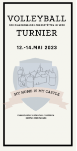 „My home ist my castle“ – unter diesem Motto steht das diesjährige Volleyballturnier der Ausbildungsstätten im VEDD – DEM verbindenden Ereignis für junge Studierende aus den Ausbildungs- und Gemeinschaftsorten. In diesem Jahr findet das Ereignis in Moritzburg statt – Gastgeber ist die Gemeinschaft Moritzburger Diakone und Diakoninnen.