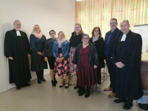 An diesem Wochenende wurden in der Diakonischen Gemeinschaft Tannenhof sechs Diakoninnen und ein Diakon eingesegnet. Die Predigt hat Landespfarrer Dr. Volker Lehnert gehalten. Gemeinsam mit den Eingesegneten wurden acht neue Mitglieder in die Gemeinschaft aufgenommen. Im Rahmen des Konvents am Samstagnachmittag wurde eine neue Leitung der Diakonischen Gemeinschaft gewählt: Felix Lobb, Bettina Hermes, Sabine Riddermann und Uwe Leicht leiten zukünftig die Gemeinschaft. (auf dem Foto fehlt Uwe Leicht)