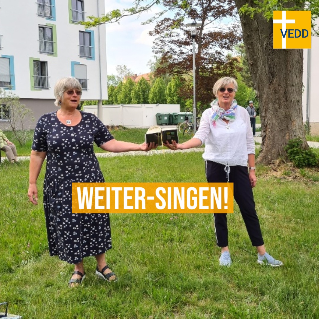 “Auch wenn eigentlich das Singen in Kirchen und unseren Senioreneinrichtungen verboten ist: Wir singen mit Abstand im Garten und bereiten so allen Bewohner*innen, Feierabendschwestern, Mitarbeiter*innen große Freude. Und ehrlich: Wir selbst freuen uns auch, so singen zu können und das Lob Gottes weiterzutragen.”