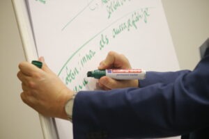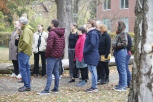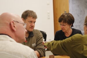 Am nächsten Tag ging es direkt in den ersten Teil des Geschäftsteils über – denn die Hauptversammlung ist das wichtigste Gremium des VEDD und es gilt, Berichte zu hören, Haushaltsentscheidungen zu treffen und Wahlen durchzuführen. In der Mittagspause sorgte Diakon Lars Madel mit einer Führung über das Gelände für die notwendige Bewegung, bevor es am Nachmittag fachlich wurde: Aus vier Gemeinschaften berichteten Referent:innen von der Beziehung zwischen diakonischer Gemeinschaft und diakonischem Unternehmen. In Ad-hoc-Gruppen konnten sich die Teilnehmenden hinterher miteinander austauschen.