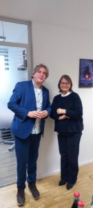 Tobias Kirchof, stellvertretender Direktor der Evangelischen Arbeitsstelle für missionarische Kirchenentwicklung und diakonische Profilbildung (midi) begrüßte im Namen des ganzen midi-Teams die neuen Nachbarn sehr herzlich. Auch einige Kolleg:innen aus dem Haus waren mit dabei, unter anderem die Partner:innen von midi und vom Archiv. Die Vorständin Sozialpolitik der Diakonie Deutschland, Maria Loheide, begrüßte die VEDD-Vertreter:innen ebenfalls herzlich.