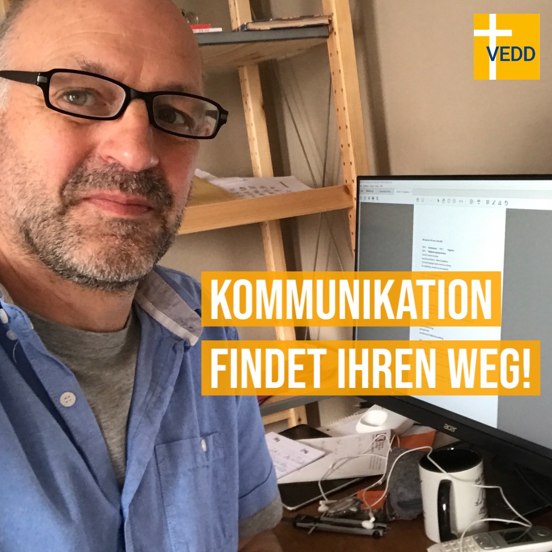 “Mein Arbeitsplatz hat sich schwerpunktmäßig nach Hause verlegt und ich vermisse den lebendigen und direkten Austausch mit Menschen. Aber auch das ist geschehen: Vieles gelingt, wenn oder weil die Grundlage für das Handeln stimmt: Die Kommunikation des Evangeliums.”