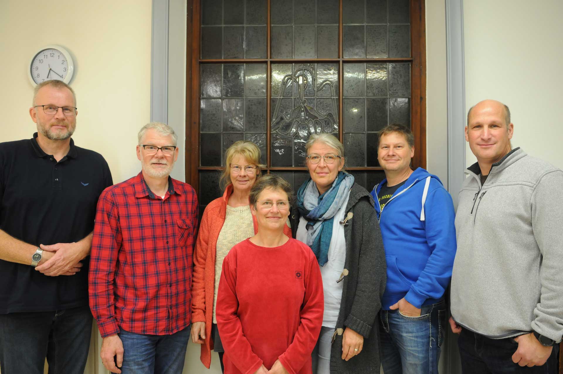 Bildunterschrift: Die Mitglieder des Bruderschaftsrates (v. l.) Siegbert Naujoks, Gert Sachsen, Conny von Baal, Barbara Detlefs, Bettina Lorenz-Gashema, Bernhold Reimer, Kai Wessels