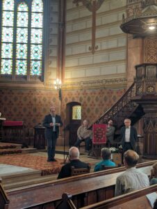 Der langjährige Älteste der Gemeinschaft der Moritzburger Diakone und Diakoninnen, Diakon Klaus Tietze, ist vergangenen Sonntag in den Ruhestand verabschiedet worden. Zuletzt hatte er in der Martin-Luther-Kirche in Geringswalde auf einer Pfarrstelle gearbeitet, wohin ihn die Landeskirche vor einigen Jahren berufen hatte. Von 2008 bis 2016 war er der Älteste der Gemeinschaft in Moritzburg und in diesem Zusammenhang auch in verschiedenen VEDD-Ämtern aktiv, beispielsweise in der Ältestenkonferenz. Diakon Tobias Petzoldt hatte herzliche Grüße von der bundesweiten Diakon:innenschaft zur Verabschiedung mitgebracht, sowie für die kulturell-musikalische Mitgestaltung des Gottesdienstes gesorgt. „Mich verbindet eine tiefe Dankbarkeit mit Klaus Tietze”, verabschiedete sich der VEDD-Geschäftsführer vom ehemaligen Kollegen. „Ich freue mich besonders über die unglaublich volle Kirche zu seiner Verabschiedung. Das zeigt, welche Bedeutung seine Arbeit auch für den Sozialraum hatte.” Klaus Tietzes abwechslungsreiche Berufsbiografie zeigt, wie breit aufgestellt Diakon:innen sind und mit welcher theologischen Tiefe sie durch ihr Berufsleben gehen.