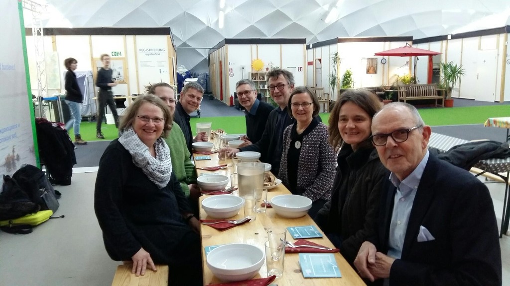 Der Abend war verbunden mit einem Besuch bei Diakonin Ellen Eidt in der “Kältenotübernachtung III – HalleLuja” der Stadtmission am Containerbahnhof (Traglufthalle). Dort fand auch das gemeinsame Abendessen statt. Die Vorstandsmitglieder waren im Jugendgästehaus der Stadtmission untergebracht.