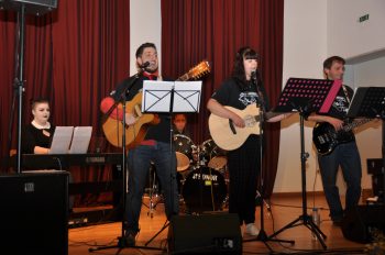 Im Abendmahls-Gottesdienst wurden zwei neue Mitglieder (Sr. Irmgard Gruber und Br. Florian Seitz mit ihren Assistentinnen – Foto) in die Gemeinschaft feierlich aufgenommen. Nach der Aufnahme wurde allen Jubilaren ein persönlicher Segen von Pfr. Peter Schwarz und Sr. Roswitha Buff zugesprochen (Foto). Zum Abschluss des Tages spielte die JUZ-Band „Talent befreit“ einige Lieder aus ihrem Repertoire Unser neuer Mitbruder Florian Seitz ist einer der Gitarristen und Sänger (Foto).