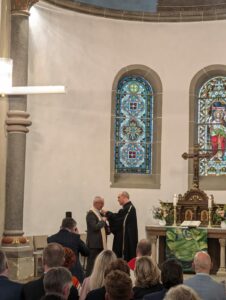 Der VEDD war im Gottesdienst sowie beim anschließenden Empfang vertreten. Neben vielen Vertreter:innen der Diakonischen Gemeinschaft der Brüder und Schwestern vom Lindenhof, die das diakonische Profil der Evangelischen Stiftung prägen, waren Gäste der Schwestern- und Brüderschaft des Evangelischen Johannesstift in Berlin, der diakonischen Brüder- und Schwesternschaft Wittekindshof, der Diakonischen Gemeinschaft Nazareth in Bielefeld, der Gemeinschaft Moritzburger Diakone und Diakoninnen sowie der Brüder- und Schwesternschaft Johannes Falk in Eisenach mit dabei, die den Verdienst von Hans-Christoph Jaekel und die Einführung von Ronny Rösler über Neinstedt hinaus würdigten. Diakon Tobias Petzoldt, Geschäftsführer des VEDD, war ebenfalls als Gast geladen. „Erneut ist ein Diakon Vorstand in der Evangelischen Stiftung. Das zeigt, dass wir in unseren Ämtern und Diensten sehr gut dazu geeignet sind, verantwortliche Posten zu übernehmen und dass diese Fähigkeit verstärkt nachgefragt wird”, so der Diakon.